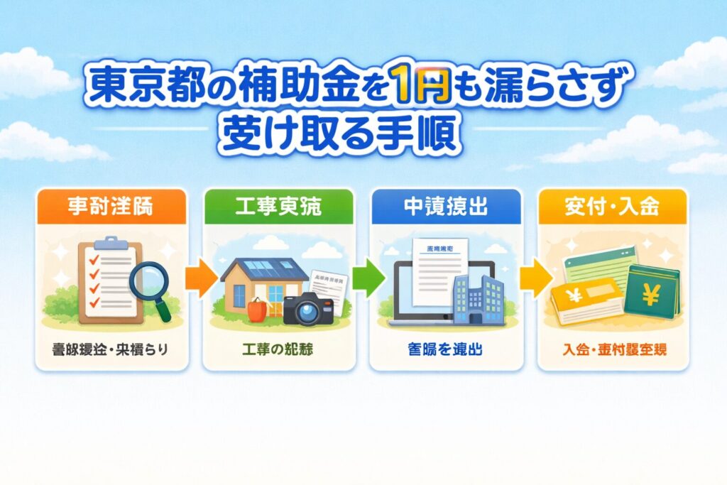 領収書や施工前後の写真を完璧に残します。 - 交付申請(工事完了後):